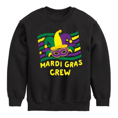 Boys' Instant Message Mardi Gras Here For The Cake Graphic Long Sleeve Fleece Sweatshirt - Black - Large