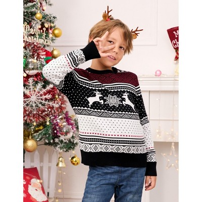 Boys' - Instant Message - Pixel Sweater Deer Christmas Graphic Long Sleeve Fleece Sweatshirt