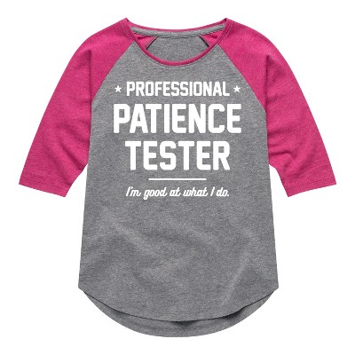 Instant Message - Professional Patience Tester - Youth Raglan - Instant Message is an online specialty fashion retailer for everything from funny to inspiring printed apparel. We offer a range of garments from long sleeve and relaxed fit t-shirts, to lightweight french-terry long sleeve shirts, hoodies and graphic print pullovers. Our products feature fun and trendy graphics that are perfect for any occasion and also make great gifts.