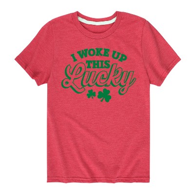 Boys' Instant Message St. Patrick's Day I Woke Up this Lucky Long Sleeve Graphic T-Shirt - Red - Small