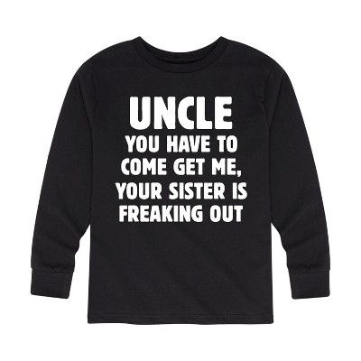 Boys' Instant Message This Little Brother's An Uncle Long Sleeve Graphic T-Shirt - Black - X-Large