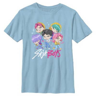 • Unleash your inner idol with this eye-catching boys' t-shirt perfect for concerts, hangouts, or everyday slaying! Featuring Mira, Rumi, and Zoey in a cute collage printed across the front.