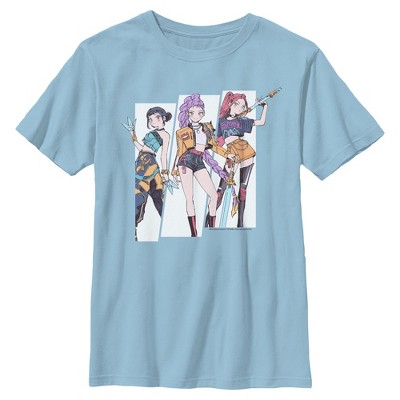 • Unleash your inner idol with this eye-catching boys' t-shirt perfect for concerts, hangouts, or everyday slaying! Featuring a sparkly depiction of Rumi, Mira, and Zoey from K-pop Demon Hunters printed across the front.