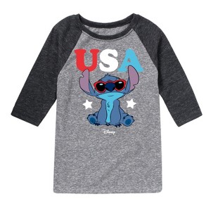 Lilo & Stitch - Stitch USA Sunglasses - Youth Raglan Graphic T-Shirt - Celebrate the ohana with Lilo & Stitch graphic apparel, blending new visuals with classic heartwarming moments featuring Lilo, Stitch, and the bonds of family.