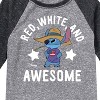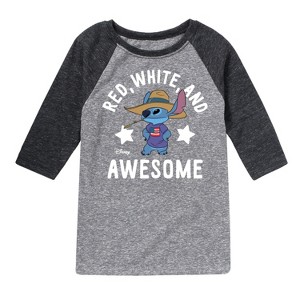 Lilo & Stitch - Red White And Awesome - Youth Raglan Graphic T-Shirt - Celebrate the ohana with Lilo & Stitch graphic apparel, blending new visuals with classic heartwarming moments featuring Lilo, Stitch, and the bonds of family.
