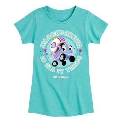 Little Tikes - Imagination Is All It Takes - Toddler & Youth Raglan Graphic T-Shirt - Celebrate the joy of playtime with Little Tikes graphic apparel featuring classics like the Cozy Coupe, Turtle Sandbox, and Tykes Slide. Bright, nostalgic, and full of fun—perfect for fans of childhood’s favorite toys.