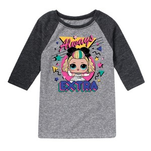 LOL Surprise! - Always Extra - Toddler And Youth Raglan Graphic T-Shirt - Dive into the world of glitter, glam, and surprises with our exclusive collection of apparel inspired by the beloved toy phenomenon, LOL Surprise! Dolls. Crafted with quality materials for comfort and durability, our Graphic Garments are perfect for expressing your unique style and spreading joy wherever you go. Whether you're uncovering the latest fashion trends or embracing the magic of surprise, our LOL Surprise! Dolls Graphic Garments are sure to add a touch of sparkle to your wardrobe. Get ready to unleash your inner diva and make a statement with our LOL Surprise!-inspired fashion today!