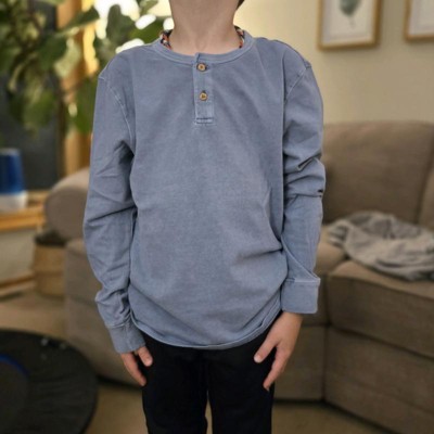 [This review was collected as part of a promotion.] (9 year old - Size M8) I recently purchased this long-sleeved henley T-shirt from Cat & Jack and it instantly became a favorite of our son's wardrobe. The material is ultra soft, he calls it his super cozy shirt. The style and fit is great too - the fit is spot on, the sleeve length and arm holes are perfect, and the neck/button combo adds a little extra sophistication to the shirt. 100% recommend. I received an incentive to write this review.