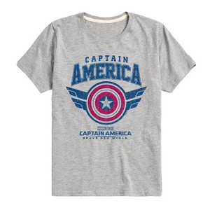 Marvel Captain America: Brave New World - Collegiate-Toddler And Youth Short Sleeve Graphic T-Shirt - Introducing our collection of officially licensed Marvel graphic apparel, where legendary superheroes and iconic moments from the Marvel Universe come to life on high-quality, comfortable clothing. Each design is carefully crafted with vibrant, detailed artwork featuring beloved characters like Spider-Man, Iron Man, Captain America, and the Avengers. From bold graphic tees to stylish hoodies and accessories, our apparel celebrates the thrilling world of Marvel with cutting-edge prints, premium fabrics, and a perfect fit for fans of all ages.