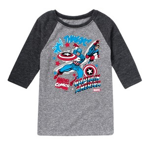 Marvel Captain America - Stickers - Toddler and Youth Raglan - Introducing our collection of officially licensed Marvel graphic apparel, where legendary superheroes and iconic moments from the Marvel Universe come to life on high-quality, comfortable clothing. Each design is carefully crafted with vibrant, detailed artwork featuring beloved characters like Spider-Man, Iron Man, Captain America, and the Avengers. From bold graphic tees to stylish hoodies and accessories, our apparel celebrates the thrilling world of Marvel with cutting-edge prints, premium fabrics, and a perfect fit for fans of all ages.