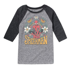 Marvel Spider-Man - Florals - Toddler And Youth Raglan - Introducing our collection of officially licensed Marvel graphic apparel, where legendary superheroes and iconic moments from the Marvel Universe come to life on high-quality, comfortable clothing. Each design is carefully crafted with vibrant, detailed artwork featuring beloved characters like Spider-Man, Iron Man, Captain America, and the Avengers. From bold graphic tees to stylish hoodies and accessories, our apparel celebrates the thrilling world of Marvel with cutting-edge prints, premium fabrics, and a perfect fit for fans of all ages.