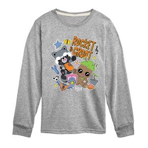 Boys' - Marvel - Guardians of the Galaxy Groot And Rocket Sticker Long Sleeve Graphic T-Shirt - 1 of 4