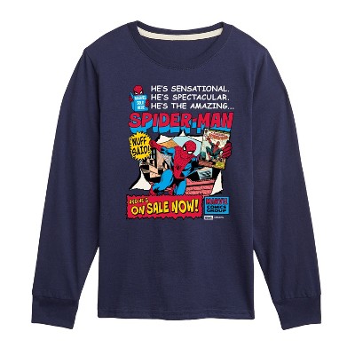 Boys' - Marvel - Spider-Man Comic Panel- Youth Long Sleeve Graphic T-Shirt Long Sleeve Graphic T-Shirt