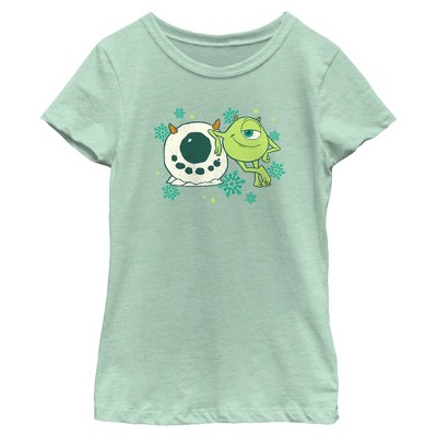Ho ho ho, boo, HISS! Embrace your festive monster spirit with this officially licensed Monsters Inc. Boys' Snowball Mike Wasaoski T-shirt! Featuring a snowball shaped like Mike Wazowski next to him and surrounded by cute blue snowflakes. Open your closet door and prepare to celebrate Christmas in Monstropolis with these wonderful styles that will make you look the merriest and gather the most joy to become the jolliest monster. Whether you’re on the cover of a holiday magazine or visiting the human world, you can’t go wrong with these awesome Monsters Inc. Christmas designs!