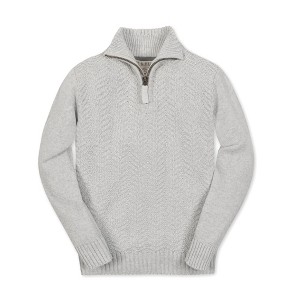 Product Name: Hope & Henry Boys' Organic Long Sleeve Half Zip Cable Pullover Sweater, Light Gray Heather Chevron, Small