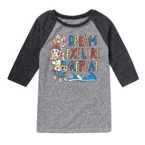 Paw Patrol - Dream, Explore, Repeat - Toddler And Youth Raglan Graphic T-Shirt - Join the Paw Patrol with graphic apparel that showcases your favorite pups—Chase, Marshall, Skye, and Rubble—ready to save Adventure Bay with their heroic adventures!