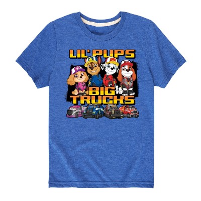 Paw Patrol - Lil Pups Big Trucks - Toddler And Youth Short Sleeve Graphic T-Shirt - Join the Paw Patrol with graphic apparel that showcases your favorite pups—Chase, Marshall, Skye, and Rubble—ready to save Adventure Bay with their heroic adventures!