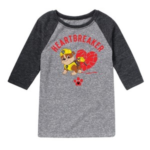 Paw Patrol -  Valentine's Heartbreaker - Toddler And Youth Raglan Graphic T-Shirt - Join the Paw Patrol with graphic apparel that showcases your favorite pups—Chase, Marshall, Skye, and Rubble—ready to save Adventure Bay with their heroic adventures!