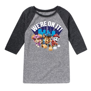 Paw Patrol - We're On It - Toddler And Youth Raglan Graphic T-Shirt - Join the Paw Patrol with graphic apparel that showcases your favorite pups—Chase, Marshall, Skye, and Rubble—ready to save Adventure Bay with their heroic adventures!