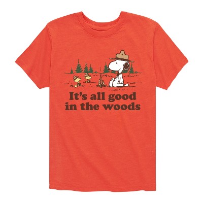 Peanuts - All Good In The Woods - Toddler & Youth Short Sleeve Graphic T-Shirt - From the best-loved comic strip in history comes officially licensed PEANUTS apparel for fans everywhere. Show your love for Charlie Brown, Snoopy, Woodstock, Lucy, Linus, Pigpen and the whole gang. Copyright Peanuts.