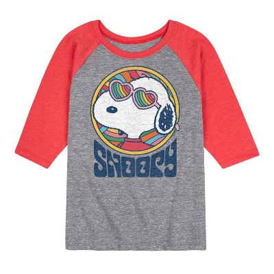 Peanuts - Feelin Groovy Snoopy And Woodstock - Toddler And Youth Raglan Graphic T-Shirt - From the best-loved comic strip in history comes officially licensed PEANUTS apparel for fans everywhere. Show your love for Charlie Brown, Snoopy, Woodstock, Lucy, Linus, Pigpen and the whole gang. Copyright Peanuts.