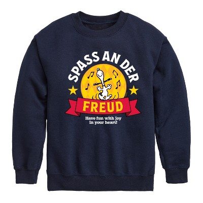 Peanuts - Snoopy Spass An Der Freud - Toddler & Youth Crewneck Fleece Sweatshirt - From the best-loved comic strip in history comes officially licensed PEANUTS apparel for fans everywhere. Show your love for Charlie Brown, Snoopy, Woodstock, Lucy, Linus, Pigpen and the whole gang. Copyright Peanuts.