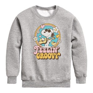 Peanuts - Feelin Groovy Snoopy And Woodstock - Toddler And Youth Crewneck Fleece Sweatshirt - From the best-loved comic strip in history comes officially licensed PEANUTS apparel for fans everywhere. Show your love for Charlie Brown, Snoopy, Woodstock, Lucy, Linus, Pigpen and the whole gang. Copyright Peanuts.