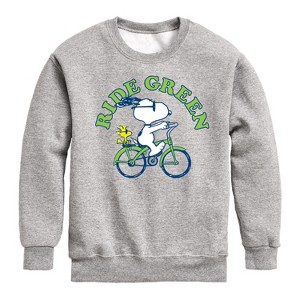 Ride Green - Toddler And Youth Crewneck Fleece Sweatshirt - From the best-loved comic strip in history comes officially licensed PEANUTS apparel for fans everywhere. Show your love for Charlie Brown, Snoopy, Woodstock, Lucy, Linus, Pigpen and the whole gang. Copyright Peanuts.