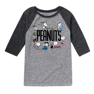 Peanuts - Group - Toddler & Youth Raglan Graphic T-Shirt - From the best-loved comic strip in history comes officially licensed PEANUTS apparel for fans everywhere. Show your love for Charlie Brown, Snoopy, Woodstock, Lucy, Linus, Pigpen and the whole gang. Copyright Peanuts.
