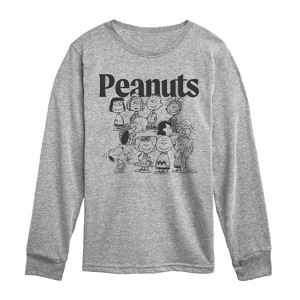 Boys' Peanuts Group Outline Long Sleeve Graphic T-Shirt - Athletic Heather - Large