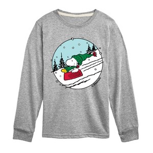 Boys' - Peanuts - Snoopy Woodstock Sled Long Sleeve Graphic T-Shirt - 1 of 4
