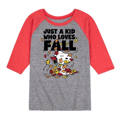 Peanuts - Just A Kid Who Loves Fall - Toddler And Youth Long Sleeve Graphic T-Shirt - From the best-loved comic strip in history comes officially licensed PEANUTS apparel for fans everywhere. Show your love for Charlie Brown, Snoopy, Woodstock, Lucy, Linus, Pigpen and the whole gang. Copyright Peanuts.