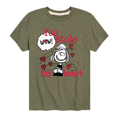 Boys' Peanuts Marcie & Peppermint Patty Short Sleeve Graphic T-Shirt - Heather Military Green - Medium