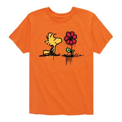 Boys' Peanuts Peace Floral & Colorful Woodstock Short Sleeve Graphic T-Shirt - Heather Orange - X-Large