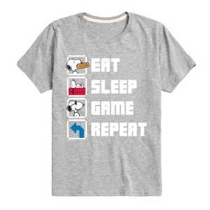 Peanuts - Eat Sleep Game Snoopy - Toddler & Youth Short Sleeve Graphic T-Shirt - From the best-loved comic strip in history comes officially licensed PEANUTS apparel for fans everywhere. Show your love for Charlie Brown, Snoopy, Woodstock, Lucy, Linus, Pigpen and the whole gang. Copyright Peanuts.