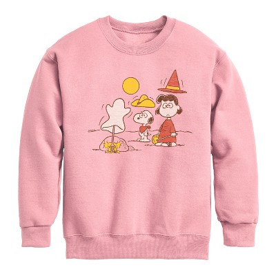 Boys' Peanuts Snoopy And Lucy Graphic Long Sleeve Fleece Sweatshirt - Mauve - Medium
