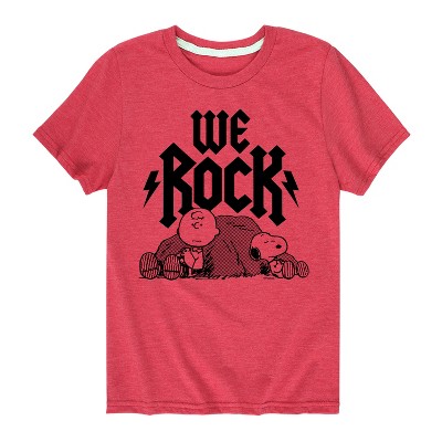 Boys' Peanuts Snoopy Charlie Lucy Sally Football Champions Short Sleeve Graphic T-Shirt - Heather Red - Small