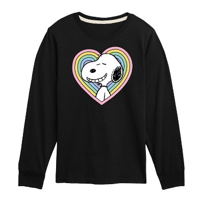 Peanuts - Snoopy Heart - Youth Long Sleeve Graphic T-Shirt - From the best-loved comic strip in history comes officially licensed PEANUTS apparel for fans everywhere. Show your love for Charlie Brown, Snoopy, Woodstock, Lucy, Linus, Pigpen and the whole gang. Copyright Peanuts.