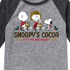 Peanuts - Snoopy's Cocoa Christmas - Toddler And Youth Raglan Graphic T-Shirt - From the best-loved comic strip in history comes officially licensed PEANUTS apparel for fans everywhere. Show your love for Charlie Brown, Snoopy, Woodstock, Lucy, Linus, Pigpen and the whole gang. Copyright Peanuts.