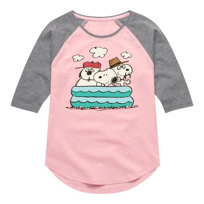 Peanuts - Snoopy Sibling Pool - Youth Raglan T-Shirt - From the best-loved comic strip in history comes officially licensed PEANUTS apparel for fans everywhere. Show your love for Charlie Brown, Snoopy, Woodstock, Lucy, Linus, Pigpen and the whole gang. Copyright Peanuts.