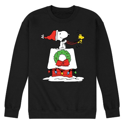 Boys' Peanuts Snoopy & Woodstock House Sleigh Graphic Long Sleeve Fleece Sweatshirt - Black - X-Large