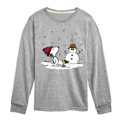 Boys' Peanuts Snoopy Woodstock Snowman Long Sleeve Graphic T-Shirt - Athletic Heather - 2T