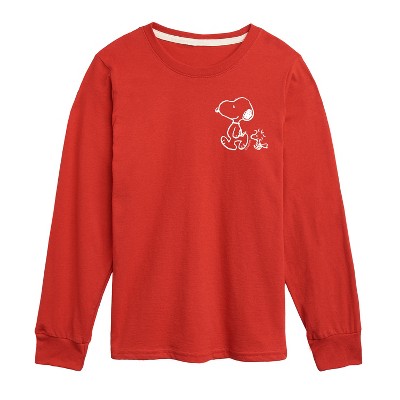 Boys' Peanuts Snoopy Woodstock Walk White Ink Long Sleeve Graphic T-Shirt - Red - Small