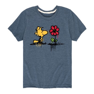 Peanuts - Woodstock With Flower And Pattern - Toddler And Youth Short Sleeve Graphic T-Shirt - From the best-loved comic strip in history comes officially licensed PEANUTS apparel for fans everywhere. Show your love for Charlie Brown, Snoopy, Woodstock, Lucy, Linus, Pigpen and the whole gang. Copyright Peanuts.