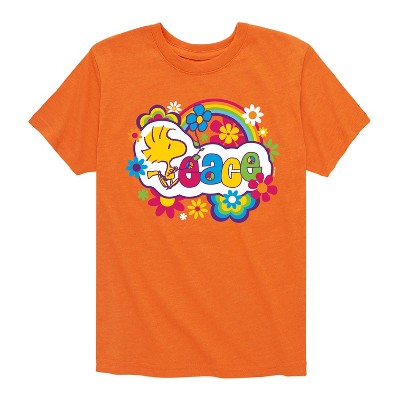 Peanuts - Woodstock With Flower And Pattern - Toddler And Youth Short Sleeve Graphic T-Shirt - From the best-loved comic strip in history comes officially licensed PEANUTS apparel for fans everywhere. Show your love for Charlie Brown, Snoopy, Woodstock, Lucy, Linus, Pigpen and the whole gang. Copyright Peanuts.