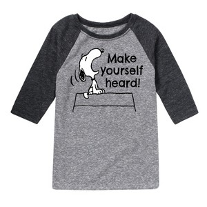 Peanuts - Make Yourself Heard - Toddler & Youth Raglan Graphic T-Shirt - From the best-loved comic strip in history comes officially licensed PEANUTS apparel for fans everywhere. Show your love for Charlie Brown, Snoopy, Woodstock, Lucy, Linus, Pigpen and the whole gang. Copyright Peanuts.