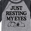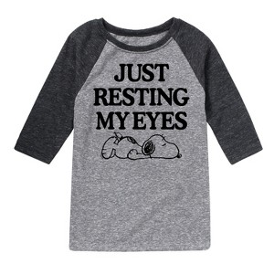 Peanuts - Resting My Eyes Snoopy - Toddler & Youth Raglan Graphic T-Shirt - From the best-loved comic strip in history comes officially licensed PEANUTS apparel for fans everywhere. Show your love for Charlie Brown, Snoopy, Woodstock, Lucy, Linus, Pigpen and the whole gang. Copyright Peanuts.