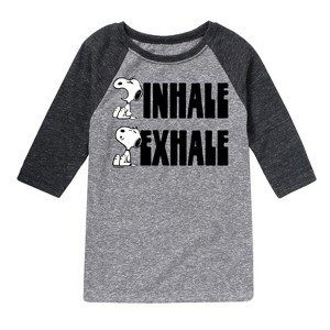 Peanuts - Snoopy Inhale Exhale - Toddler & Youth Raglan Graphic T-Shirt - From the best-loved comic strip in history comes officially licensed PEANUTS apparel for fans everywhere. Show your love for Charlie Brown, Snoopy, Woodstock, Lucy, Linus, Pigpen and the whole gang. Copyright Peanuts.