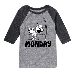 Peanuts - Lucy Monday - Toddler & Youth Raglan Graphic T-Shirt - From the best-loved comic strip in history comes officially licensed PEANUTS apparel for fans everywhere. Show your love for Charlie Brown, Snoopy, Woodstock, Lucy, Linus, Pigpen and the whole gang. Copyright Peanuts.