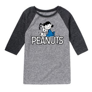 Peanuts - Snoopy And Lucy - Toddler & Youth Raglan Graphic T-Shirt - From the best-loved comic strip in history comes officially licensed PEANUTS apparel for fans everywhere. Show your love for Charlie Brown, Snoopy, Woodstock, Lucy, Linus, Pigpen and the whole gang. Copyright Peanuts.